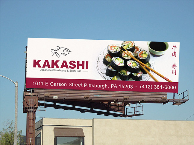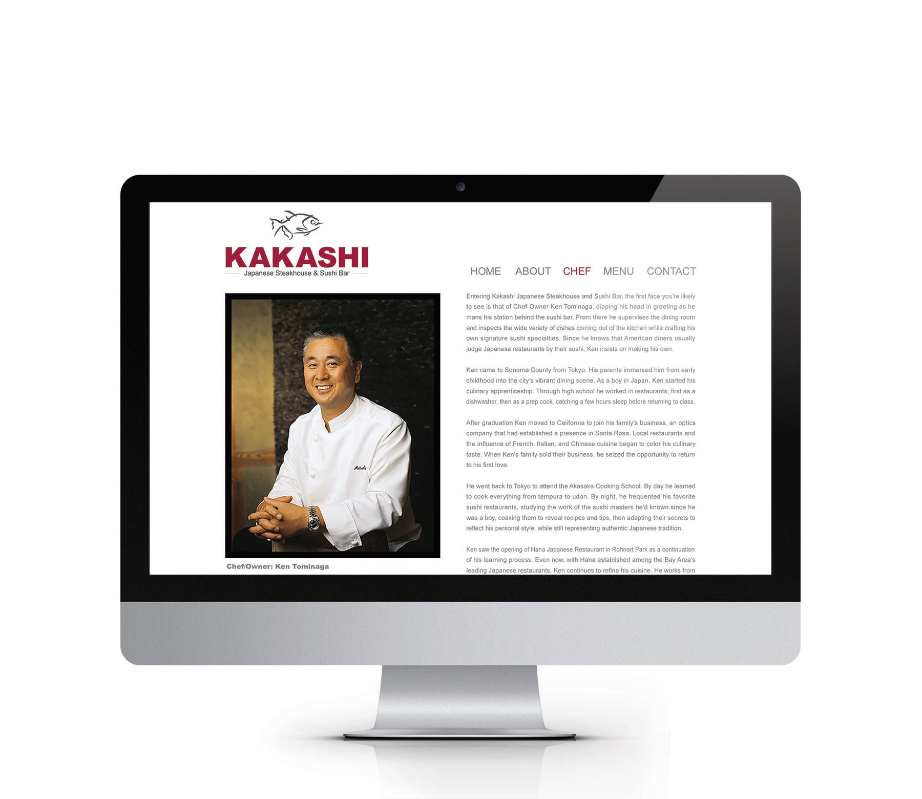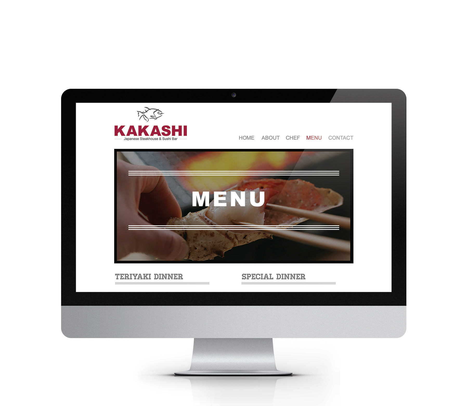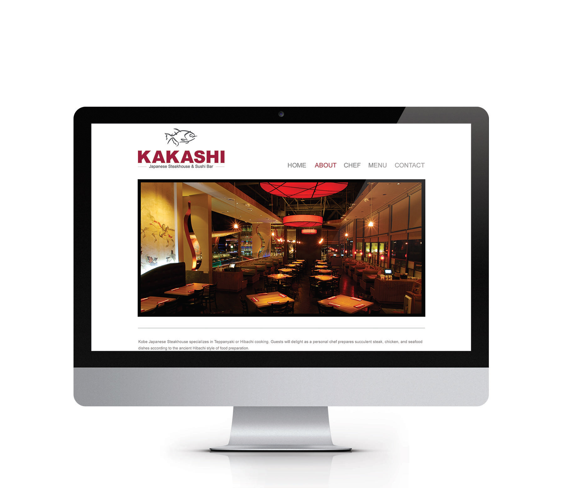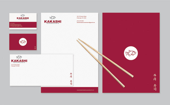 Kakashi is an upscale Japanese Steakhouse and Sushi Bar. The fish in the logo was drawn with a bamboo brush and scanned to create the mark.